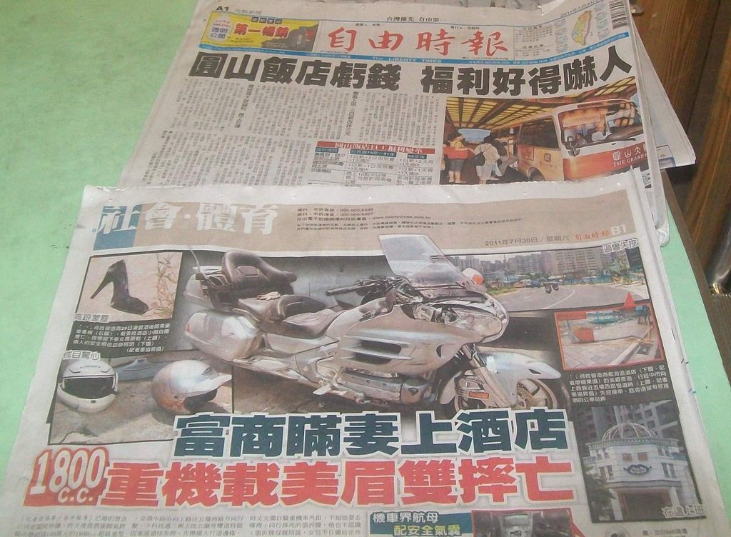 台中一名營造富商昨天凌晨,騎著價值超過140萬元,1800c.c.的超級重型機車,載酒店紅牌小姐出遊,疑似酒後失控擦撞人行道,重達375公斤的重機衝撞行道樹,50歲富商和才25歲的酒國名花,當場摔飛落地,傷重不治。
